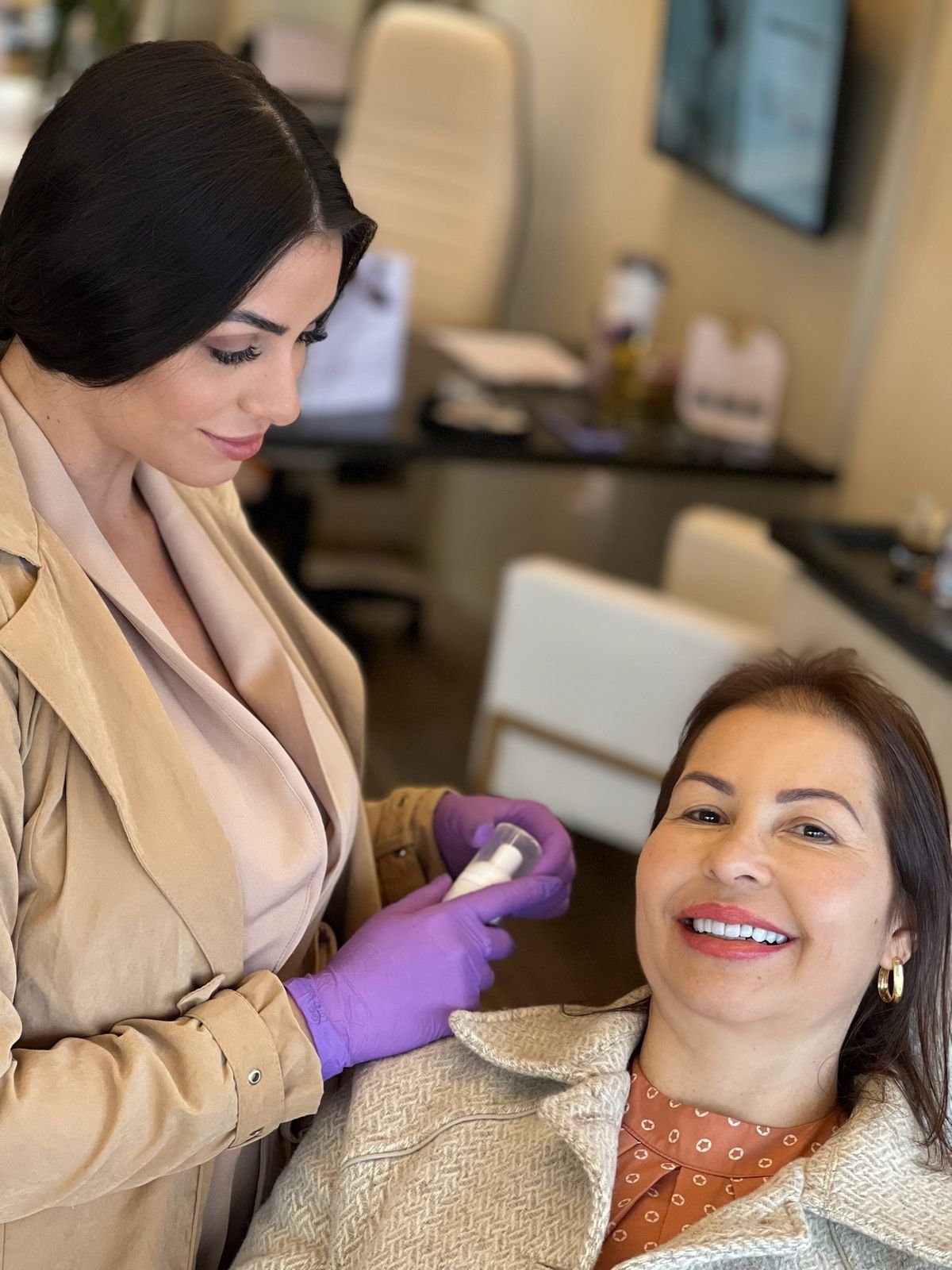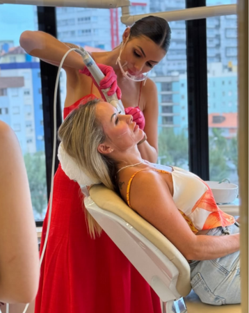 "Gostei bastante do resultado! O botóx já travou, me sinto jovem. O preenchimento das olheiras também ficou ótimo! Muito natural! E a boca, que era o que eu tava apreensiva, ficou ótimo! Isso que fazem só 3 dias... Tá super natural!"